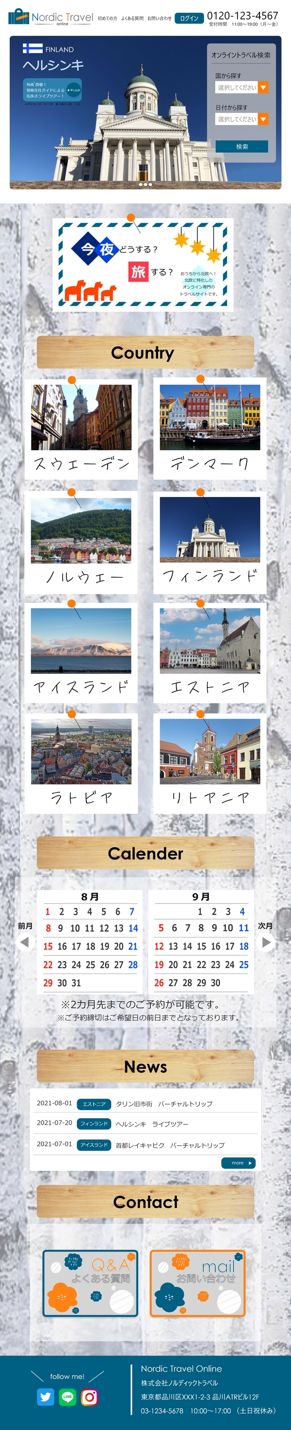 架空オンライン専用旅行サイト。LP